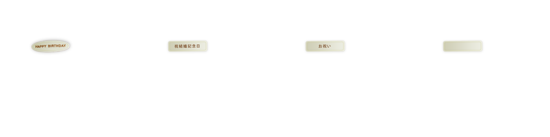 ![]() オーナメント・メッセージ・箱は買い物カゴに入れた後、選択可能です。 ご注文について宅配の制約もありご注文内容をそのままお受けできないこともございます のでご相談ください。返信メールにて製造の可否・単価等お答えいたします。 結婚記念日・お祝い・パーティなどの特別なシーンでご利用になるケーキも承っております。 |