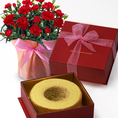 | 大きさ | 【バウムクーヘンの大きさ】直径 13cm 【カーネーション花鉢】5号鉢 |