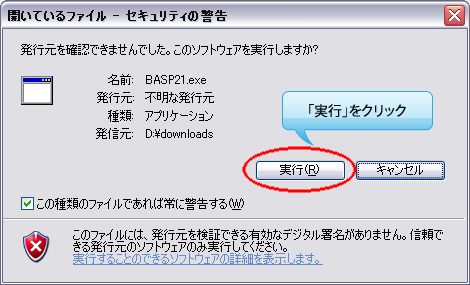 ※なお、ダウンロードした「BASP21.exe」は、インストール終了後、削除してかまいません。