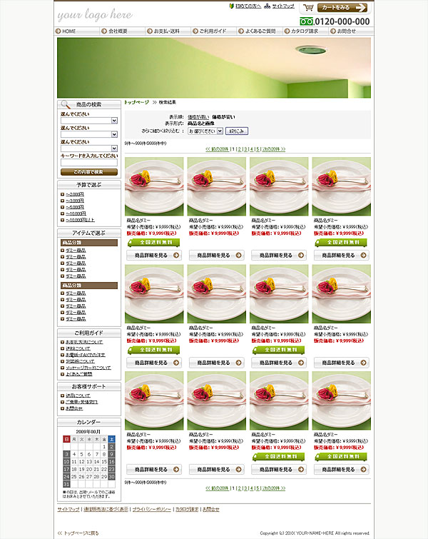トップページ以外は、テンプレート部分を利用して店舗様側でご自由に作業して頂けます。